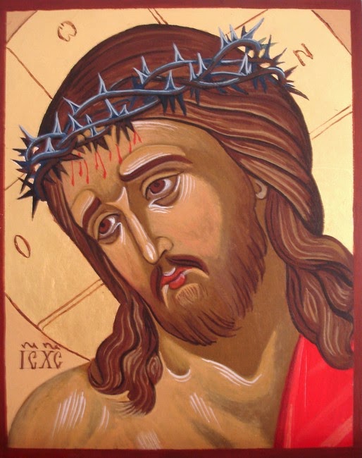 Icoon: De Lijdende Christus, Tempera met goud op hout geschilderd (september 2011)